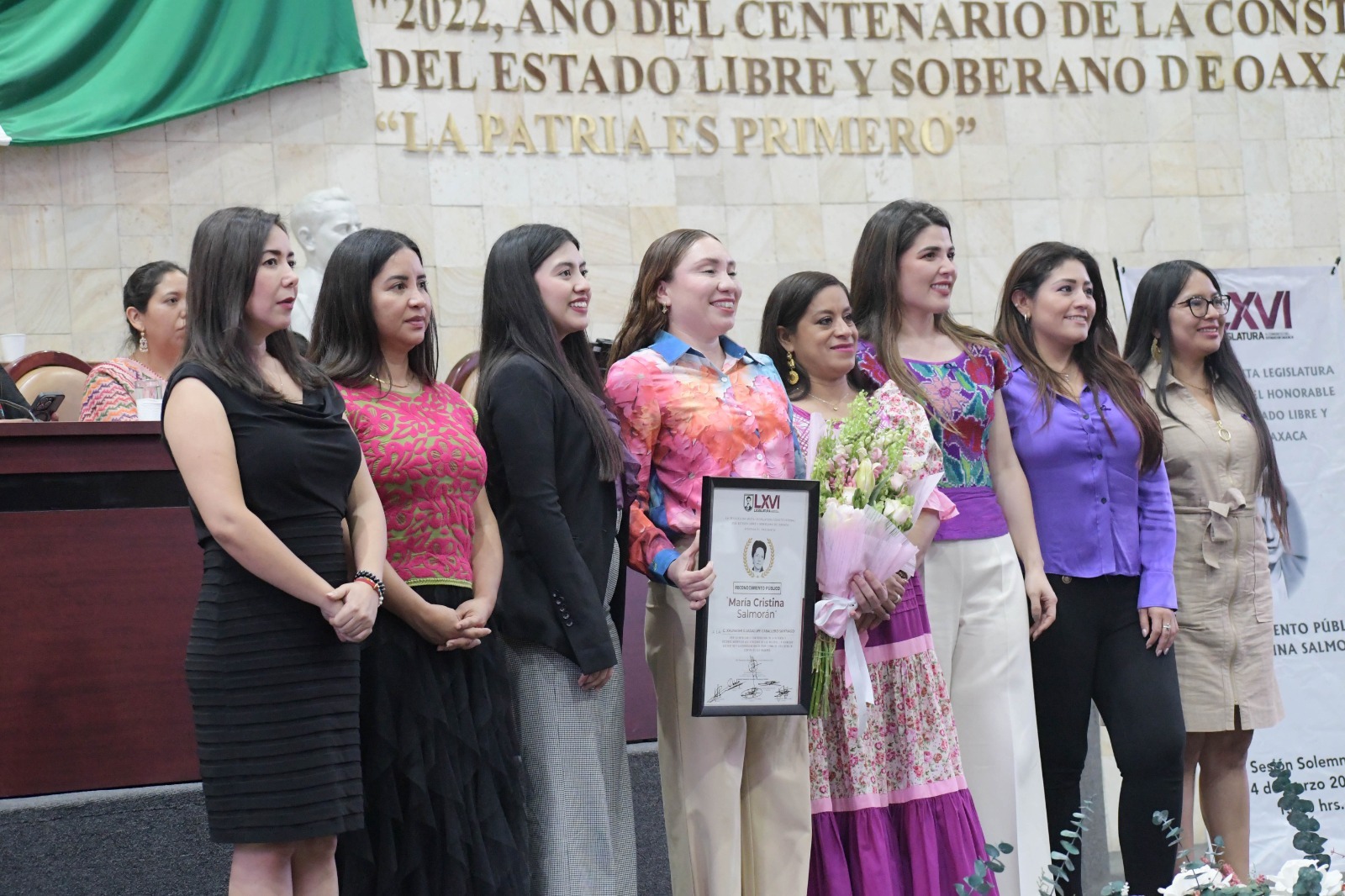 *Entrega Congreso de Oaxaca Reconocimiento Público “María Cristina Salmorán” a Xhunashi Caballero*